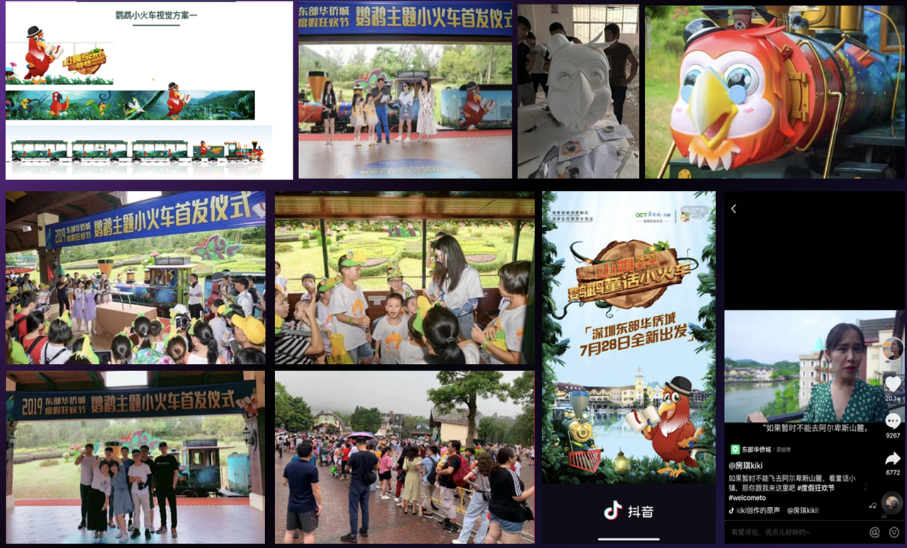 1.內(nèi)容産品側:策劃設計(jì)鹦鹉小(xπ∞≤iǎo)火(huǒ)車(chē)、打卡路(lù)線規劃、鹦鹉主題周邊如(rú)λ±網紅(hóng)冰激淩街(jiē)、鹦鹉踱步舞(wǔ)互動。