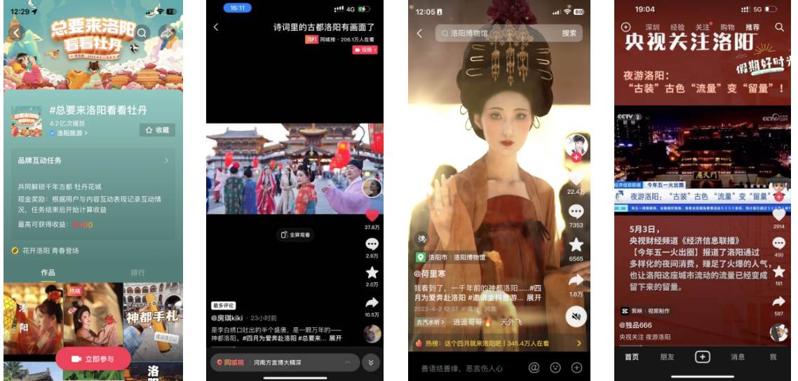 值牡丹文(wén)化(huà)節、五一(yī)節點,洛陽千年(nián)古都(dōu)怎樣<₹αφ進行(xíng)年(nián)輕化(huà)表達?通(tōng)過城(chéng)市(s♥ ∑hì)名片價值+內(nèi)容出圈打法+線上(shàng)線下(xià)互動,以漢服+旅遊♦•激活文(wén)化(huà)消費(fèi↕γ)新場(chǎng)景,創作(zuò)者扶持,留下(xià)了(le&≤)作(zuò)品和(hé)隊伍;獲人(rén)民(mín)網等媒體(tǐ)廣泛報(bà×↑∑o)道(dào),成為(wèi)繼淄博之後,抖音(yīn)帶火(>δ®<huǒ)穿漢服賞牡丹的(de)熱(rè)門(mén)打卡城(chéng)市(shìΩ& )。